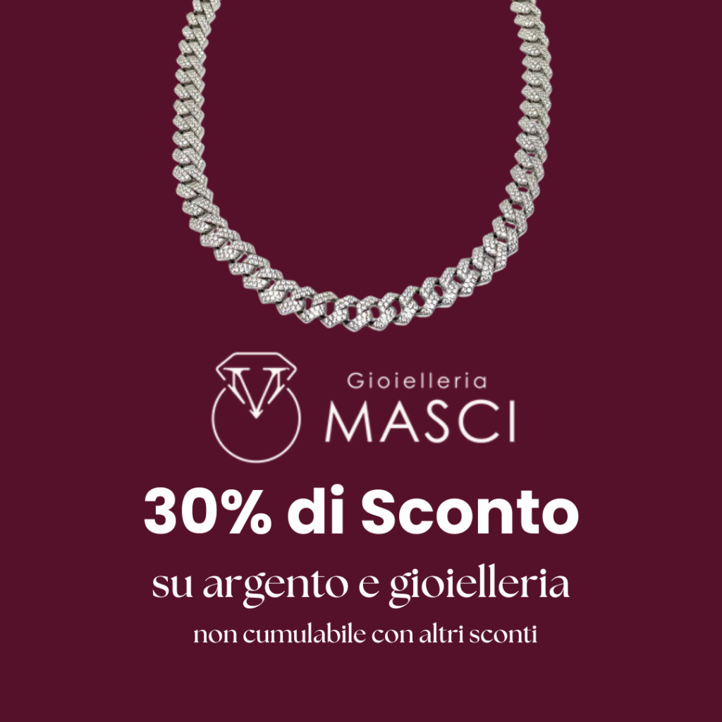 Scxonto 30% su tutto l’argento e la gioielleria! Vieni a trovarci.