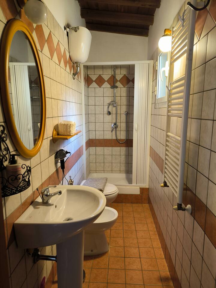 Un posto tranquillo, fuori dal caos della città. Molto caratteristico l'ambiente circostante e l'appartamento è completo, pulitissimo, comodo oltre che carinissimo. Indipendente. Cucina fornita di colazione fai da te con un divano molto comodo anche per dormire, bagno con doccia e saponi profumati, camera spaziosa.